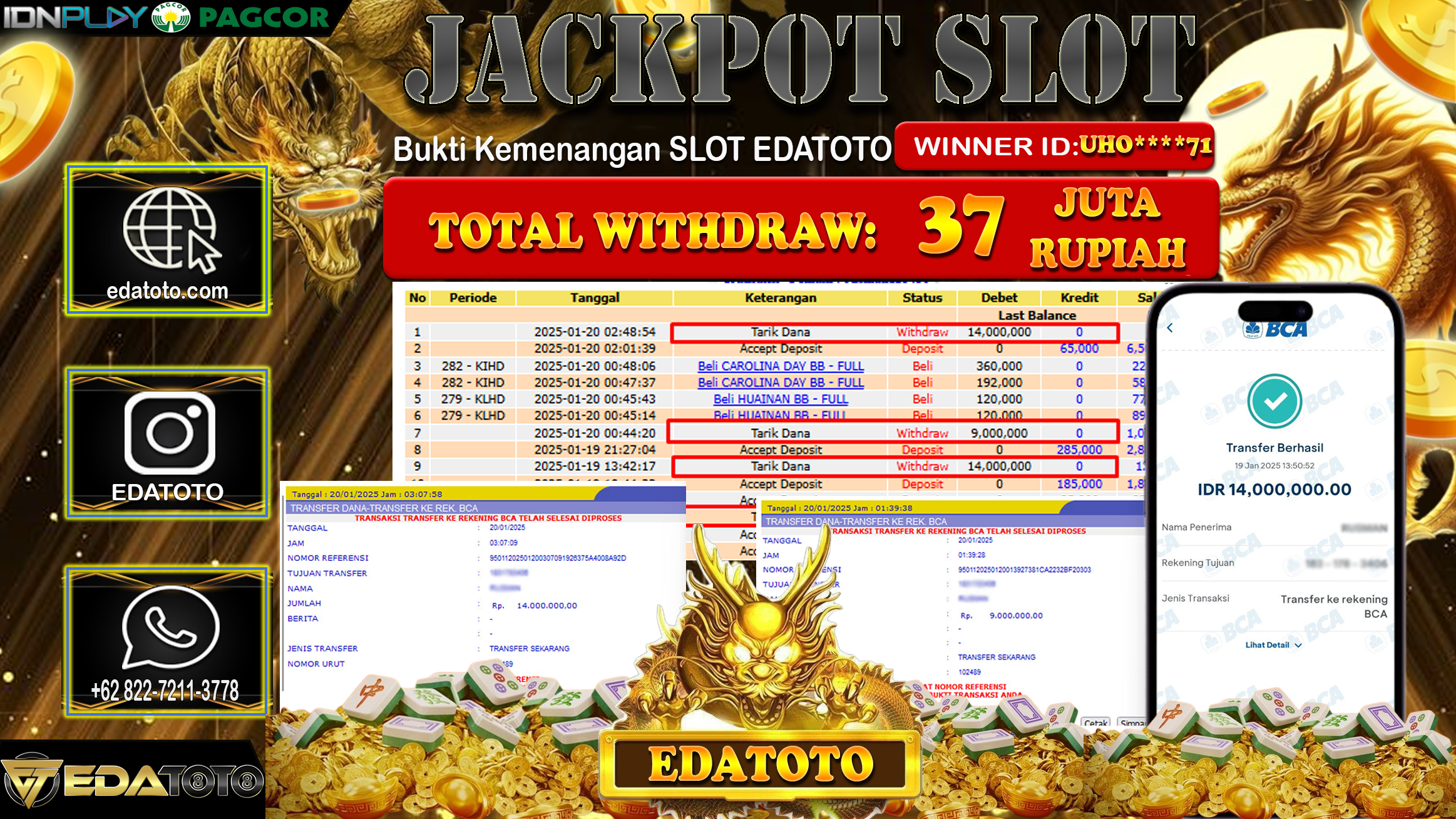 Selamat Kepada Pemilik user ID :  UHO****71 Hari/Tanggal : selasa/ 21 , JANUARY 2025 Jackpot : Rp. 37.000.000 JT Permainan . . .