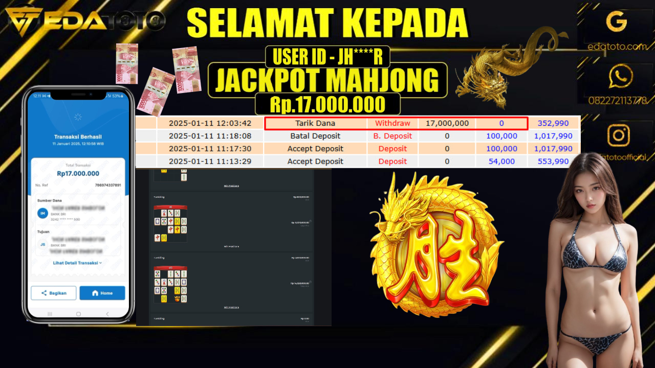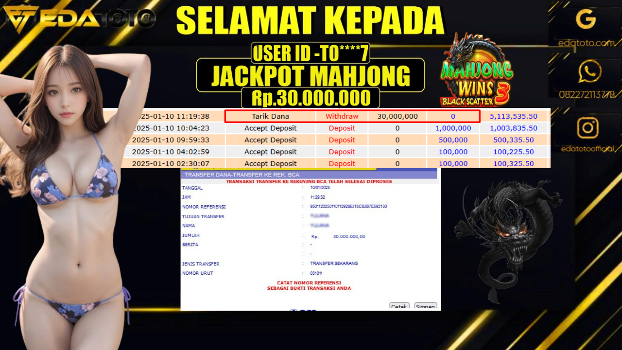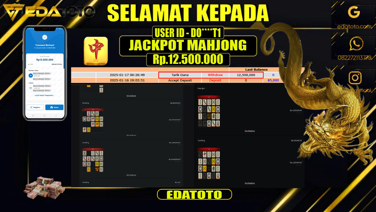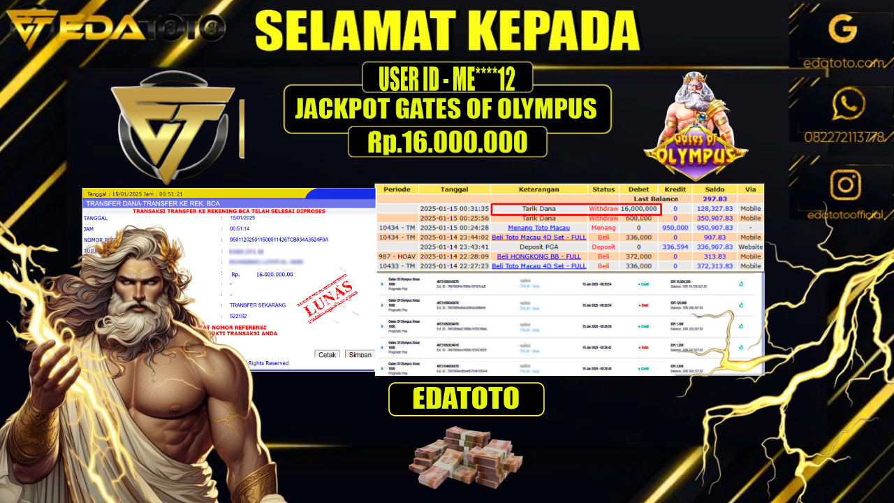 Selamat Kepada Pemilik user ID :  ME****12 Hari/Tanggal : KAMIS / 16 , JANUARY 2025 Jackpot : Rp. . . .