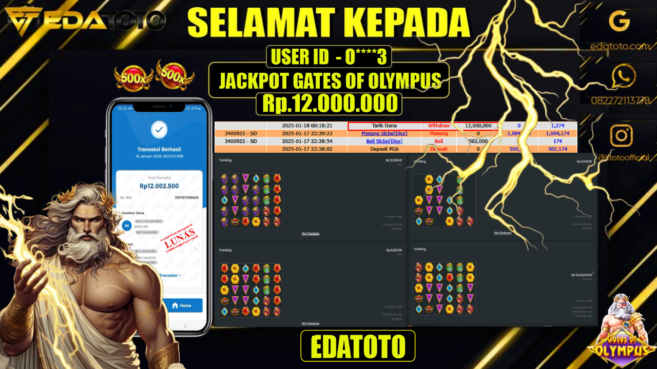 Selamat Kepada Pemilik user ID :  DO****T1 Hari/Tanggal : JUMAT / 17 , JANUARY 2025 Jackpot : Rp. 12.500.000 . . .