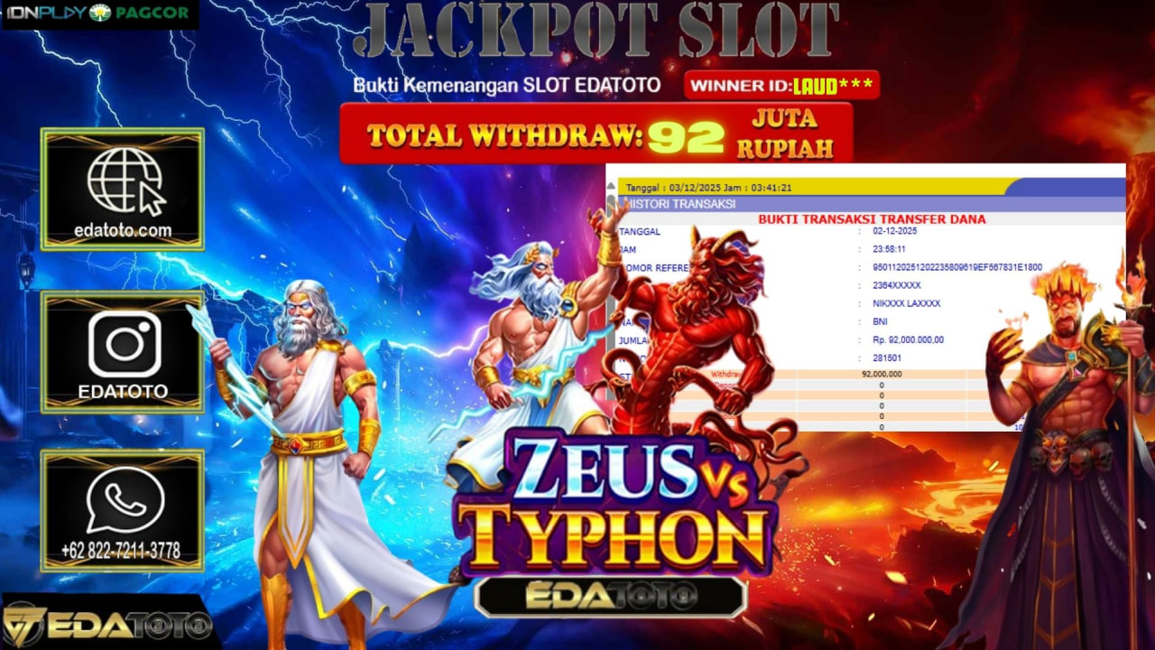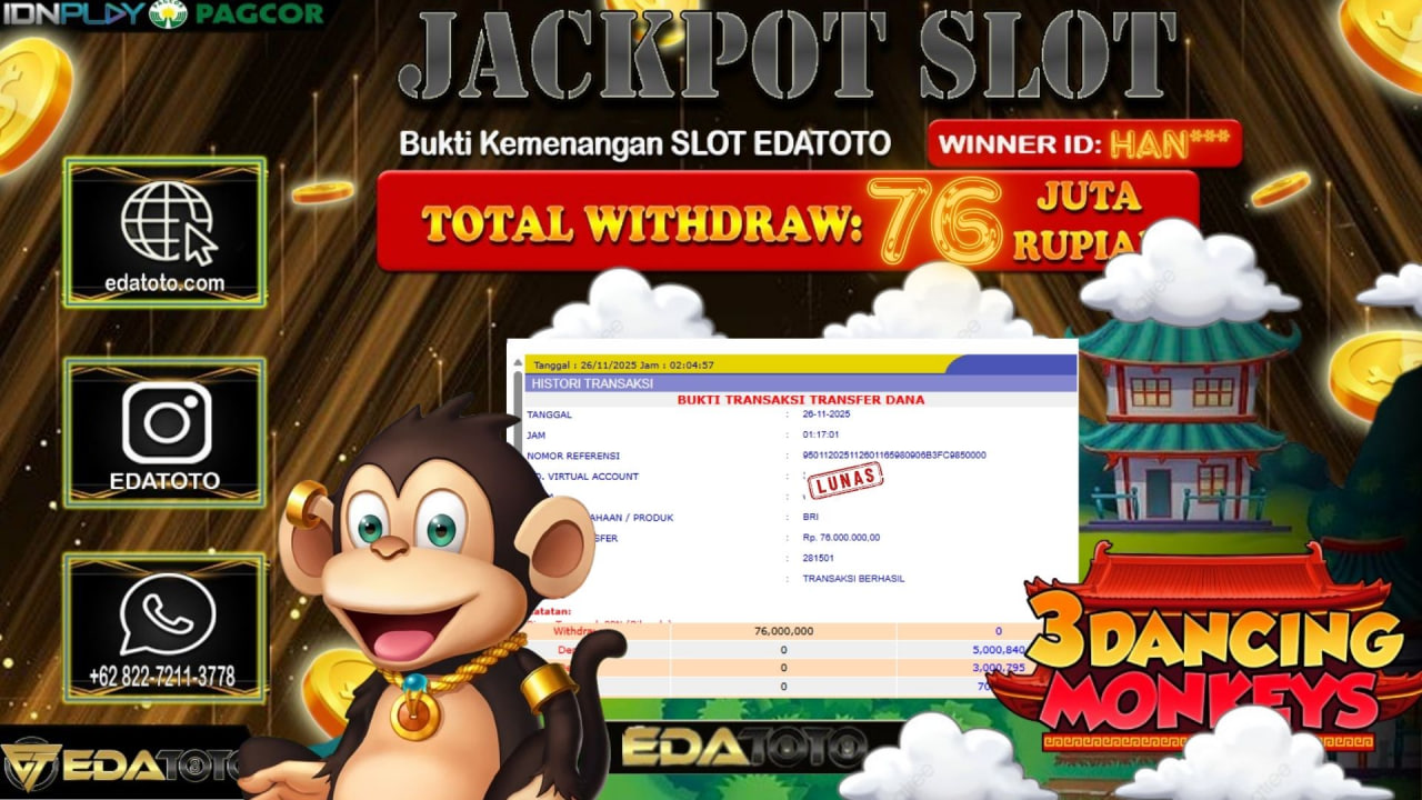Selamat Kepada Pemilik user ID : SRI*** Hari/Tanggal :KAMIS / 3, DESEMBER 2025 Jackpot : Rp. 88,805,000 JT Withdraw :85,000,000 . . .